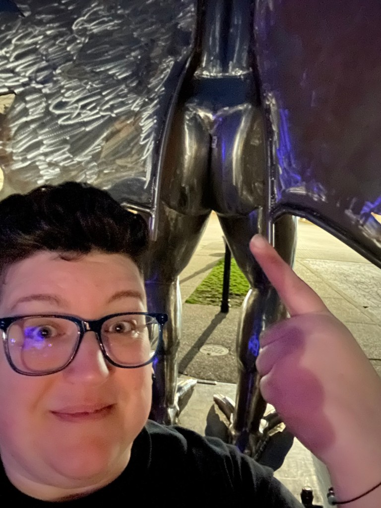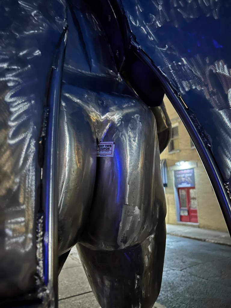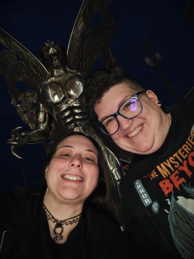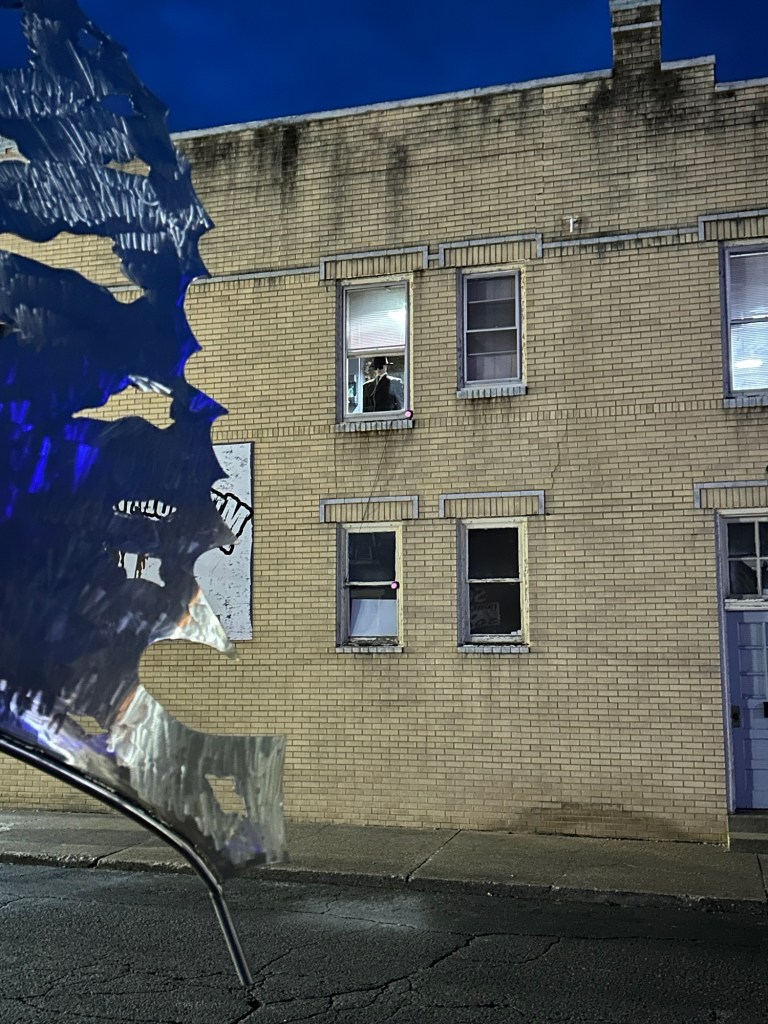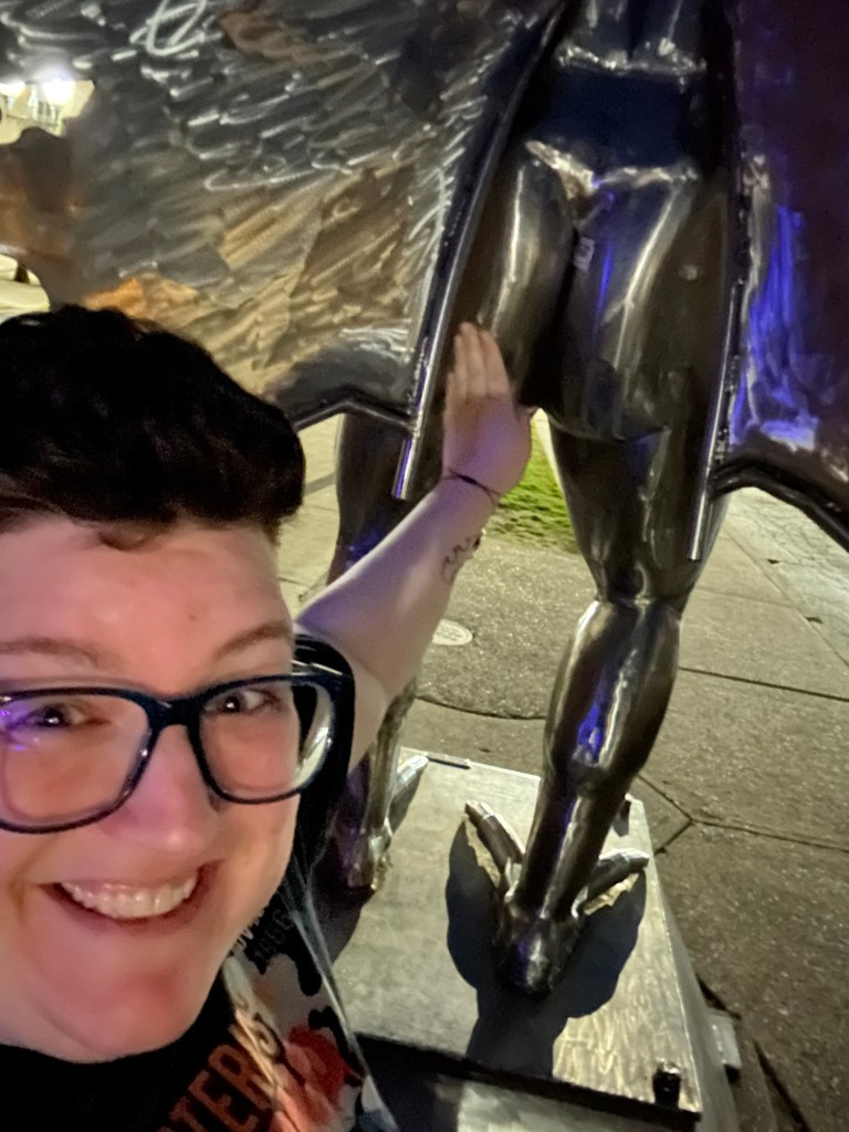 You’re never too old to fanboy over a cryptid statue at 9 o’clock at night in a small West Virginia town. On a very empty street. With a creepy mannequin watching you.