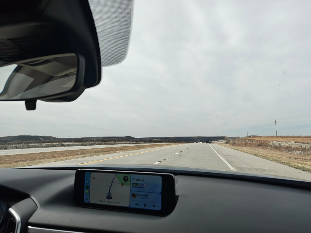 Kansas (the state) is a fascinating drive, with a landscape that rolls and crests and falls for miles and miles before some midpoint when the rolling hills are less and less and give way to endless miles of sky. Also shoutout to Kansas for having their road repair game on point. Those roads were smooth-sailing with nary a pothole. 10/10.